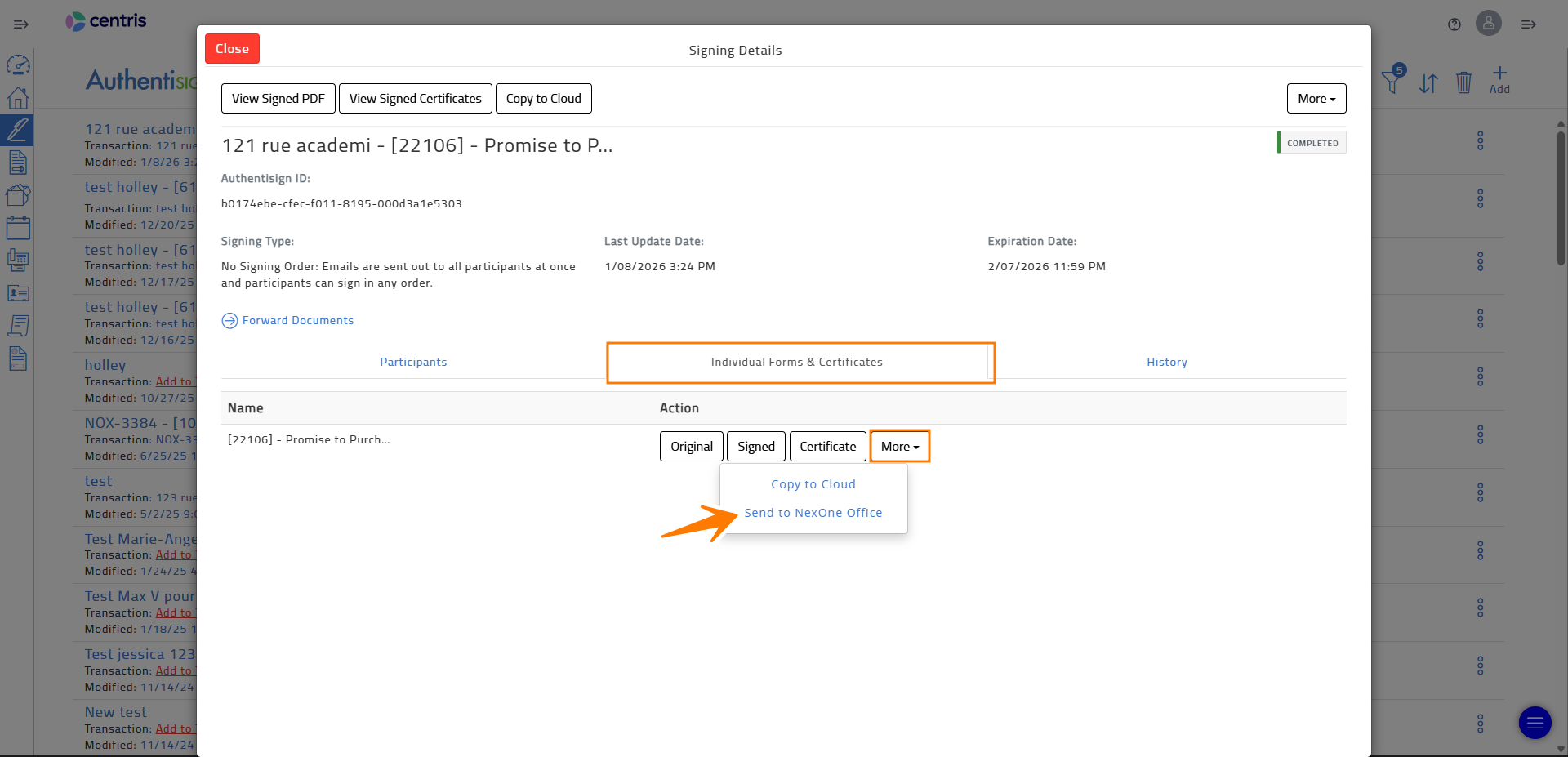 Select Individual Forms & Certificates, more and Send to NexOne Office