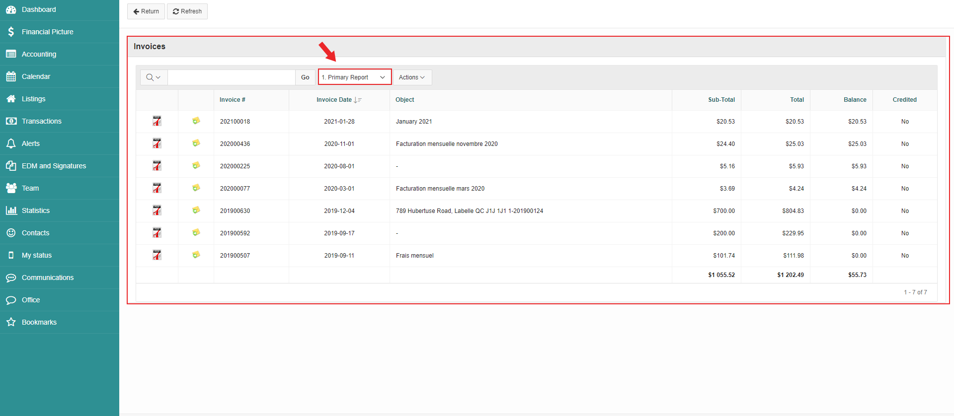 In the Accounting section of your account, you can go in Brokerage Invoices to see all the invoices from your office related to your brokerage activities.
