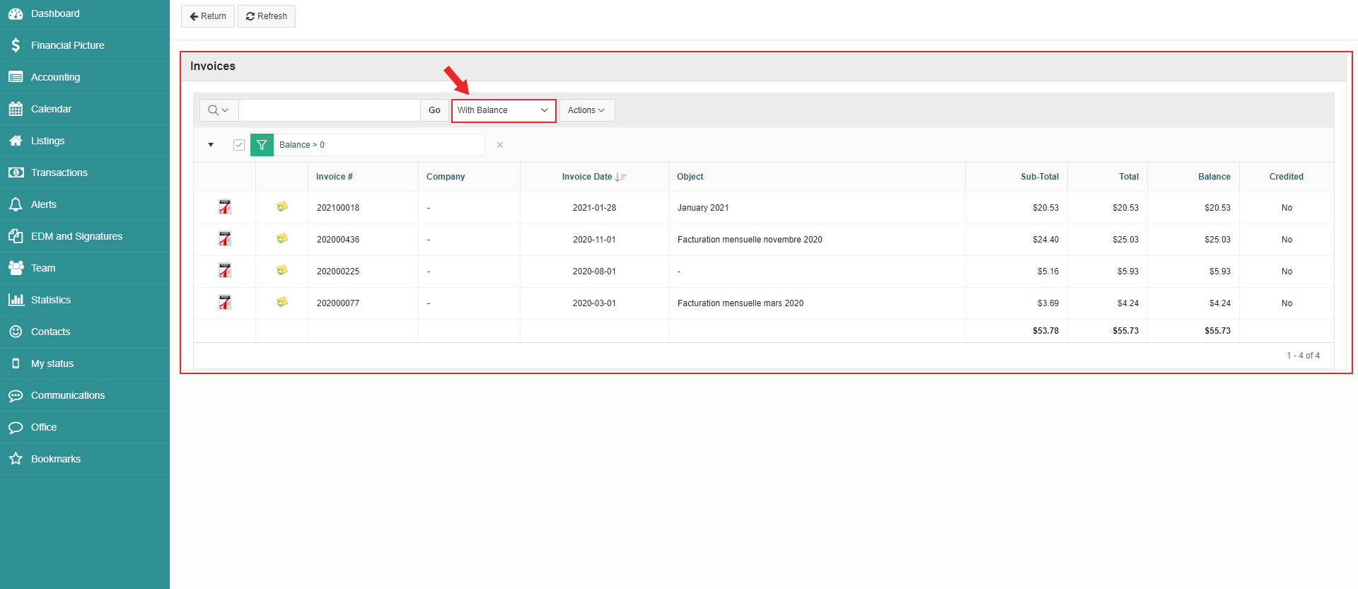 You can also choose to display invoices in 2- With balance, all invoices with a balance due in nexone.