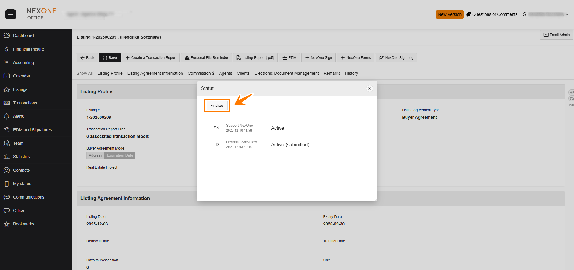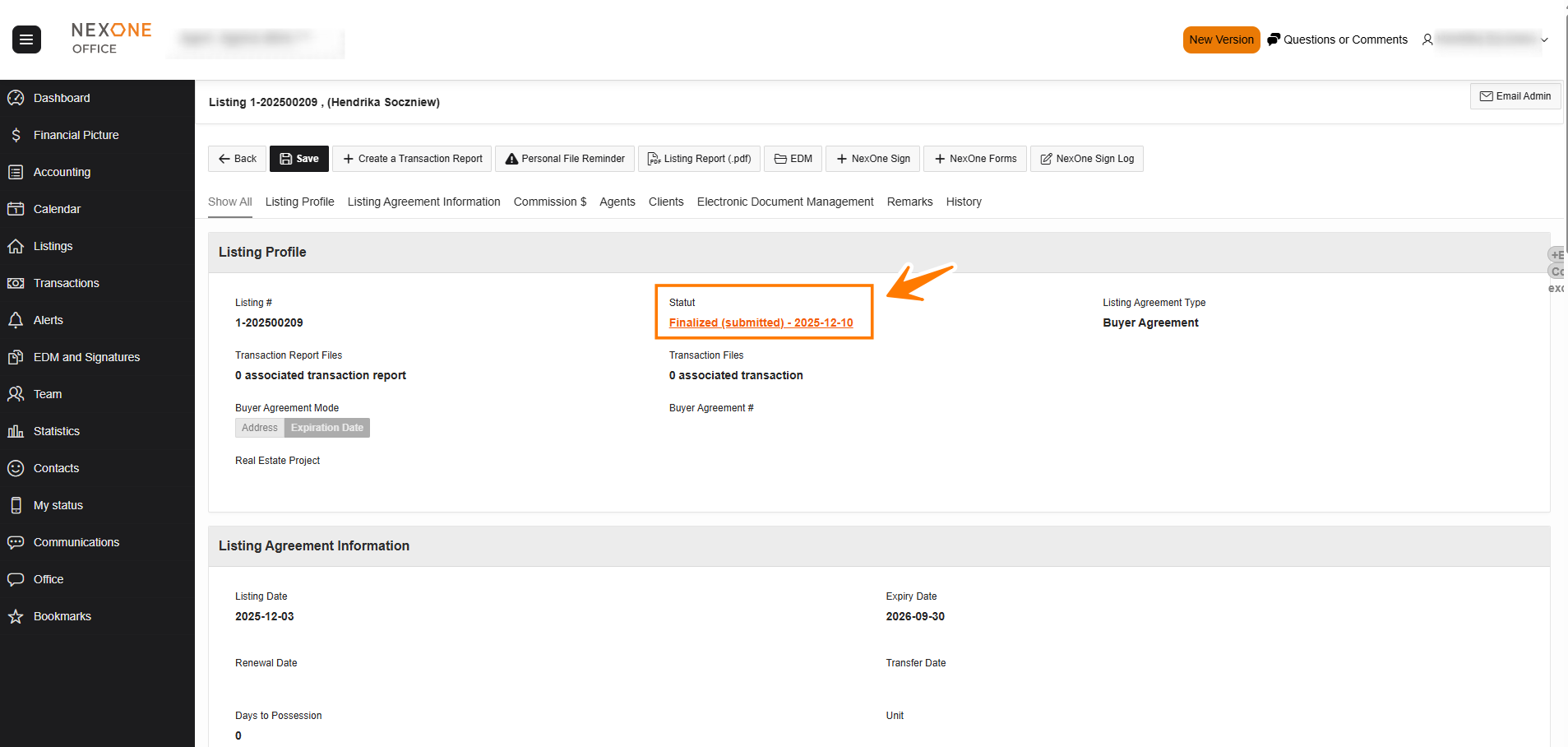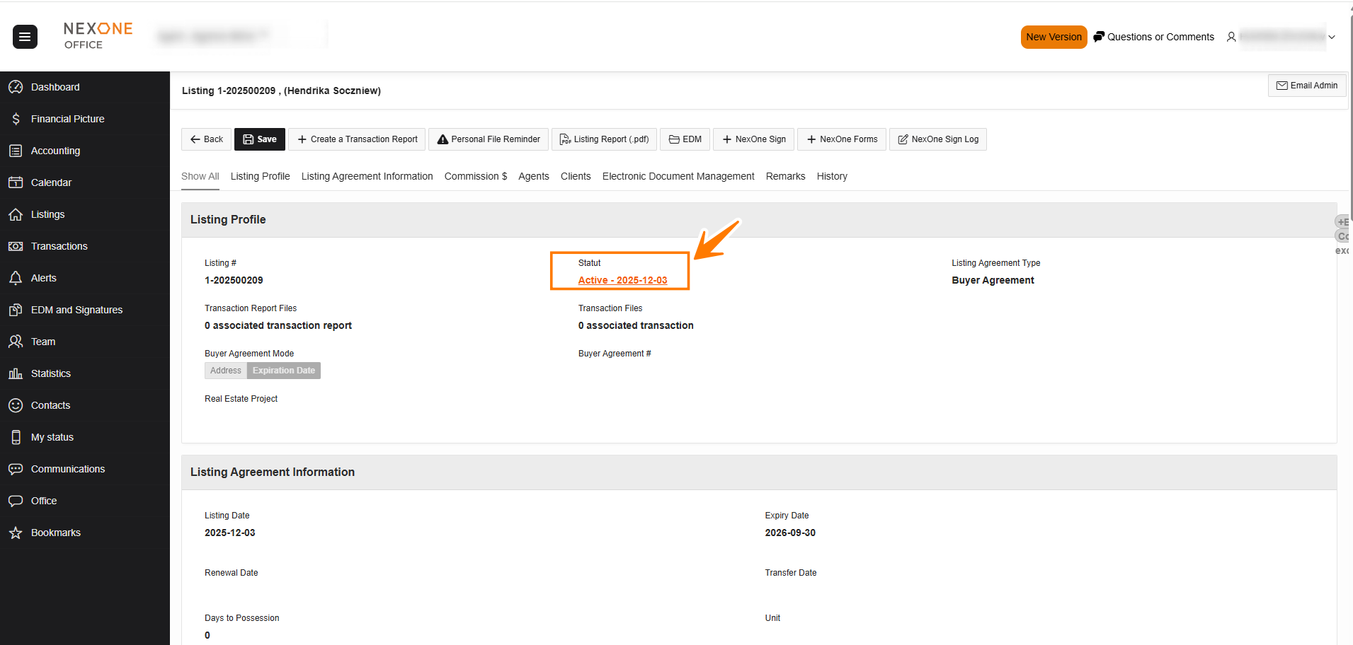 The admin will now have access to the new buyer agreement listing. Once created on their end, it will return in the listing file > Buyer Agreement
