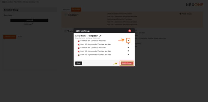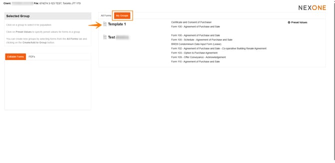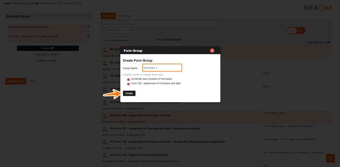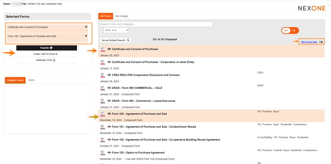 Select New Form view on the right. Click on the forms that you would like to add to your group. All the forms that you select will appear on the left hand side. To remove one of the selected forms click the X next to the name in the left hand list. When the forms have been selected, click on Create/Add to Group.