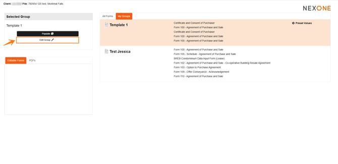 Once in the groups section, you will be able to view your groups and their related forms. You can select the group and edit the forms or select populate which will allow you to begin filling them out!