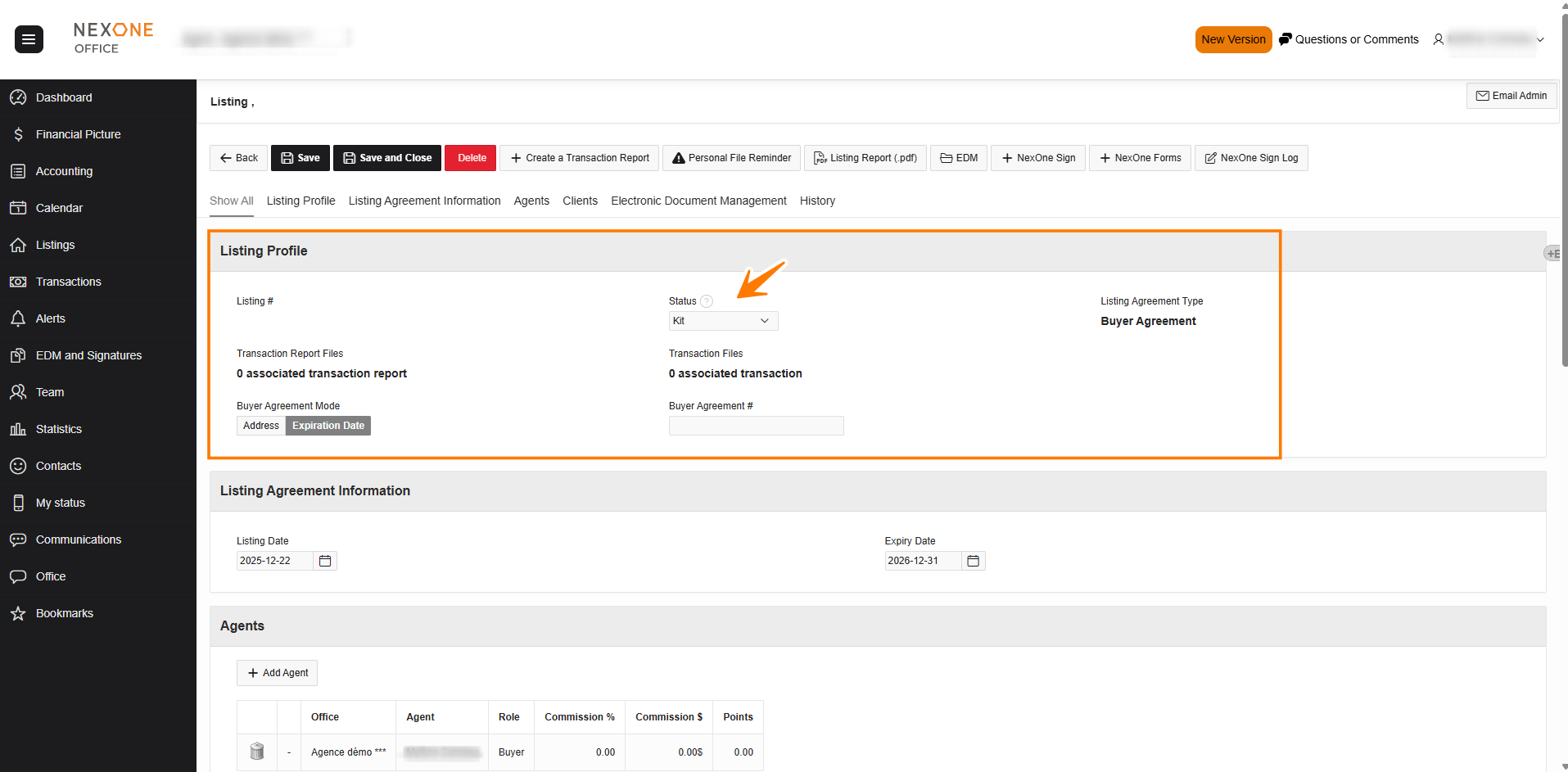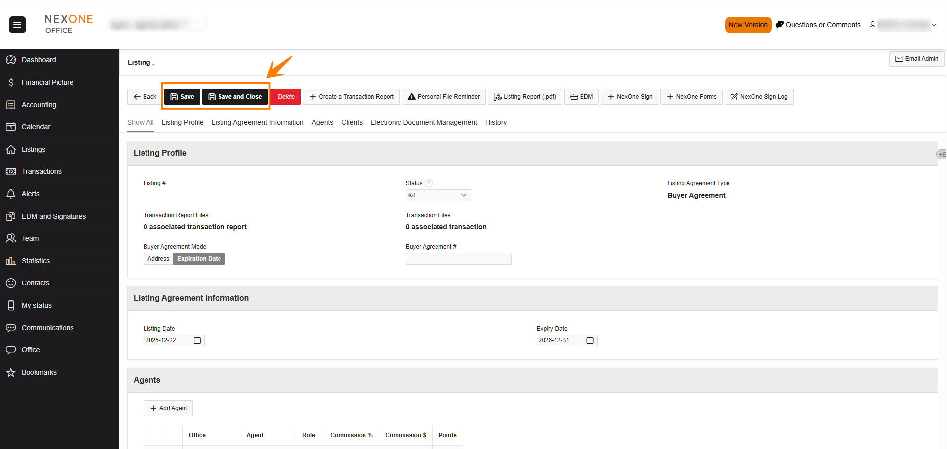 Save your Buyer Agreement Kit by clicking on Save in the Listing profile page
