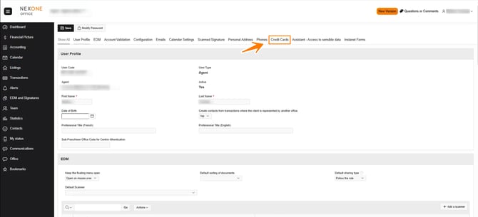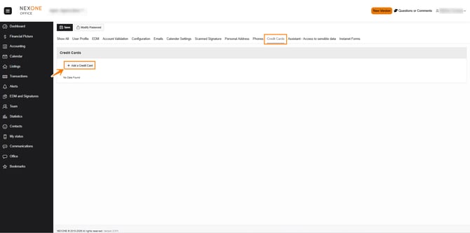 To update or add a credit card to your NexOne Office agent profile, follow the steps below.