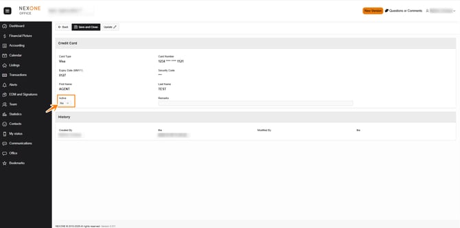 If the credit card is no longer active, select No to remove it from your profile, Save and Close.