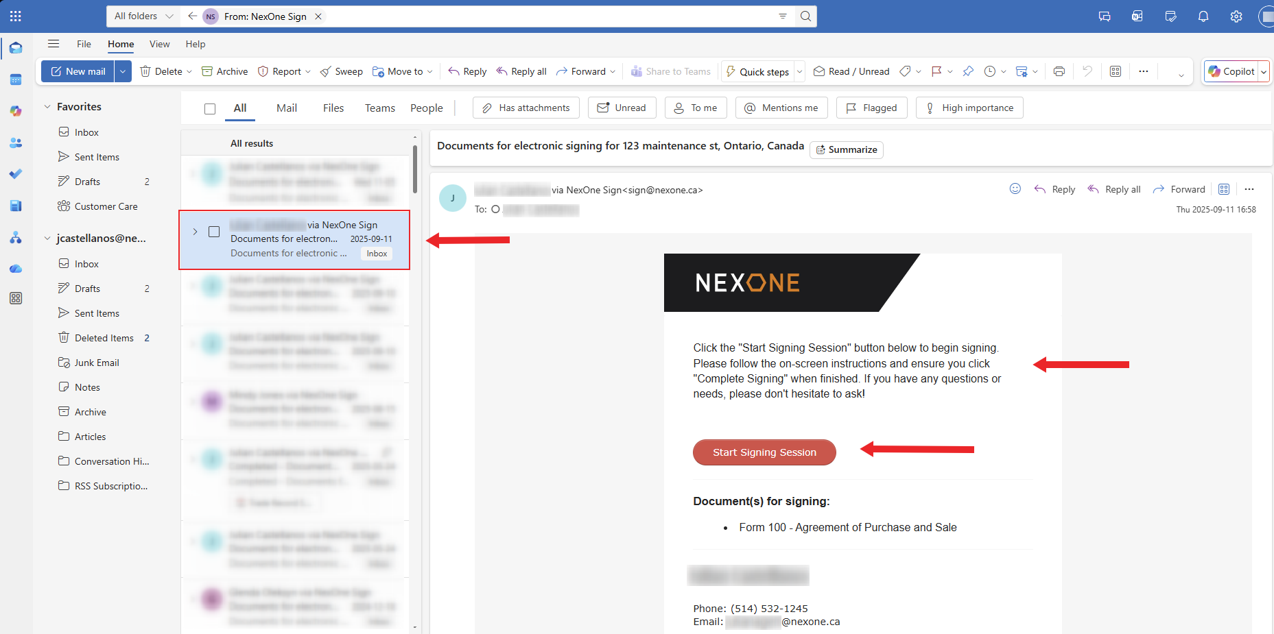 1. Receive 'Documents for electronic signing', sent to their personal email. Then, click the "Start Signing Session" button within the email.