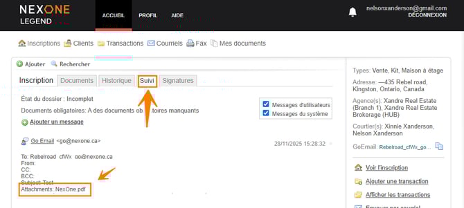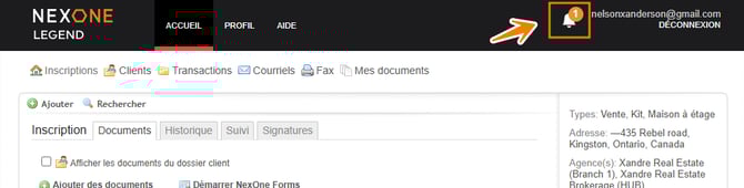 Pour les dossiers d’inscription et de clients, seul le courtier recevra une notification.
