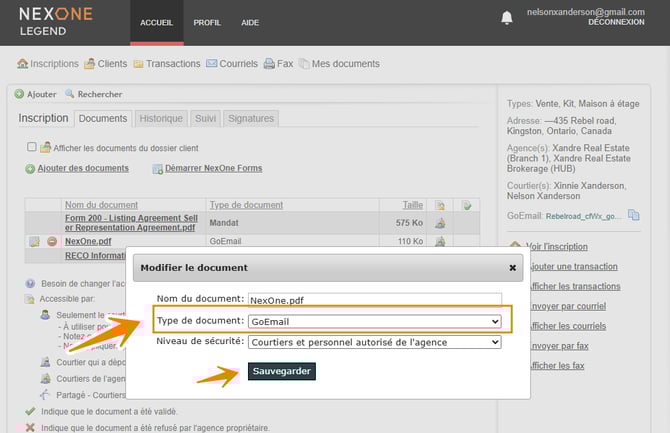 - Choisissez le bon type de document dans le menu déroulant et cliquez sur sauvegarder