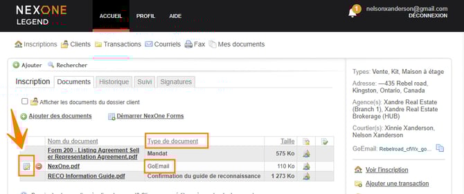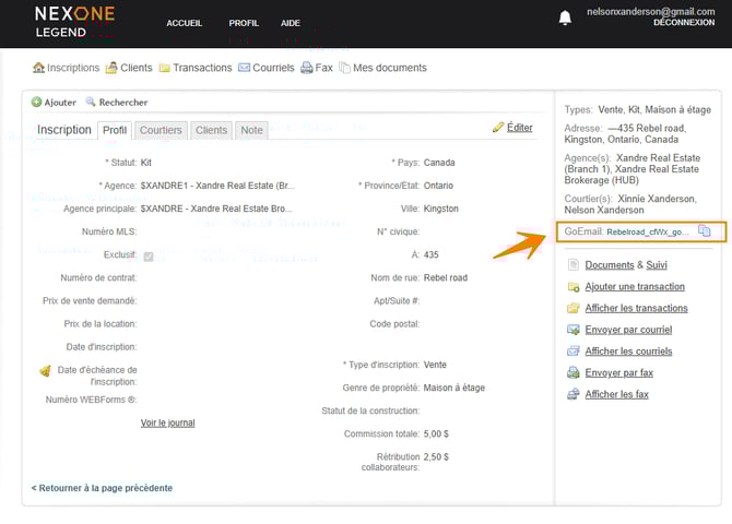 Copier l'identifiant GoEmail ID associé au dossier Inscriptions, Clients ou Transactions où vous désirez envoyer les documents