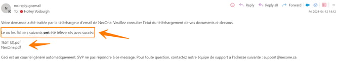 L’expéditeur reçoit un courriel l’informant si la livraison est un succès, est partielle ou si elle a échoué.