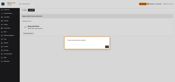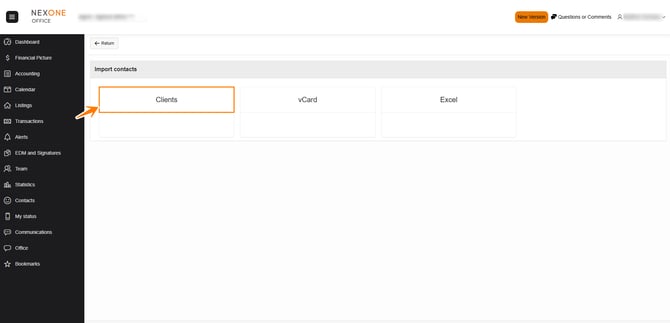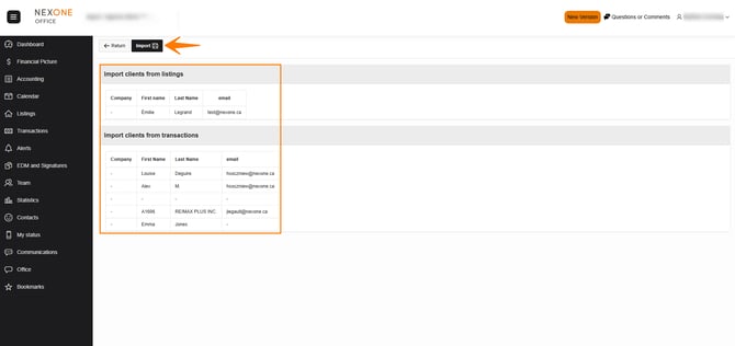 3 - You will see the list of clients contacts according to the selected criteria and you just have to click on Import.