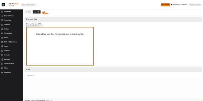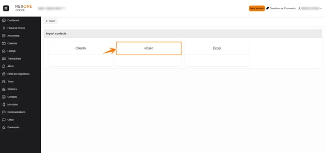 From the Contacts menu, click on Import contact. You will have 3 options.