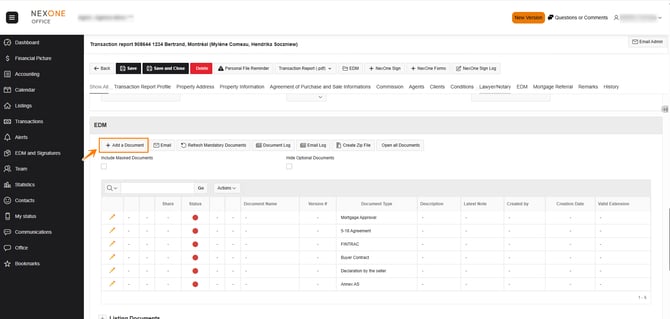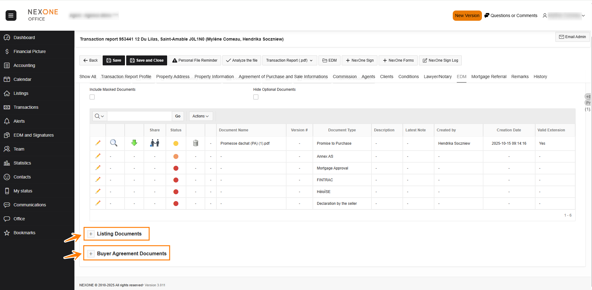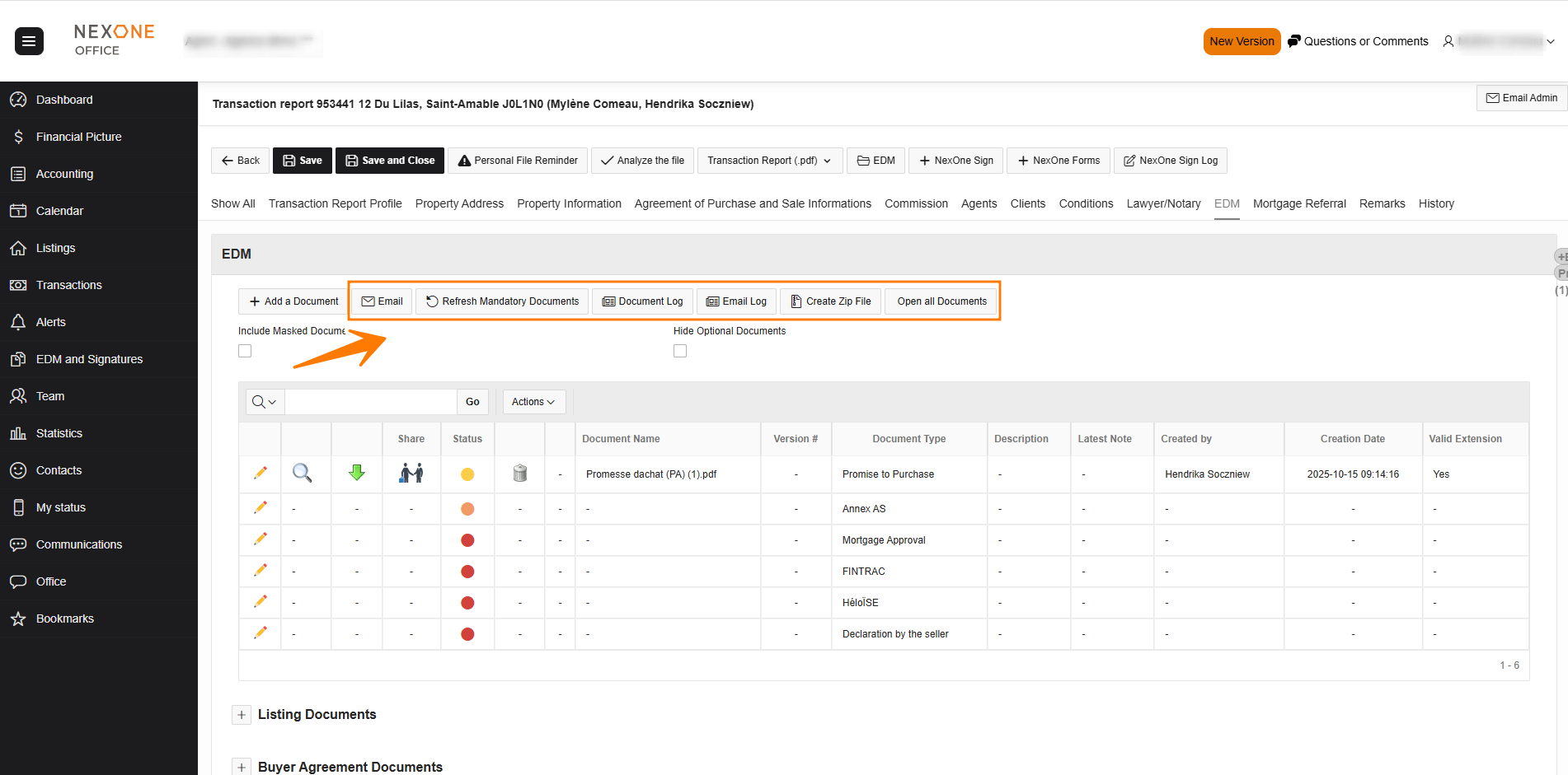 When creating a Transaction report linked to your Listing or Buyer Agreement, go to the EDM section and select “Listing Documents” or “Buyer Agreement Documents” to view the documents to the related files.