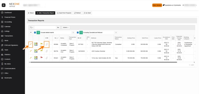 You can directly access the EDM of your transaction by selecting the trombone. You can also modify or add information to transactions by pressing the Pencil.