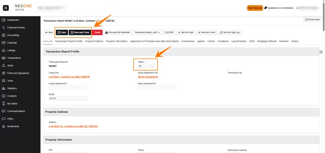 Once the status Kit is changed, the file is shared with the office and certain restrictions will apply on the agent side. Your file will also be moved to the Transaction Reports section.