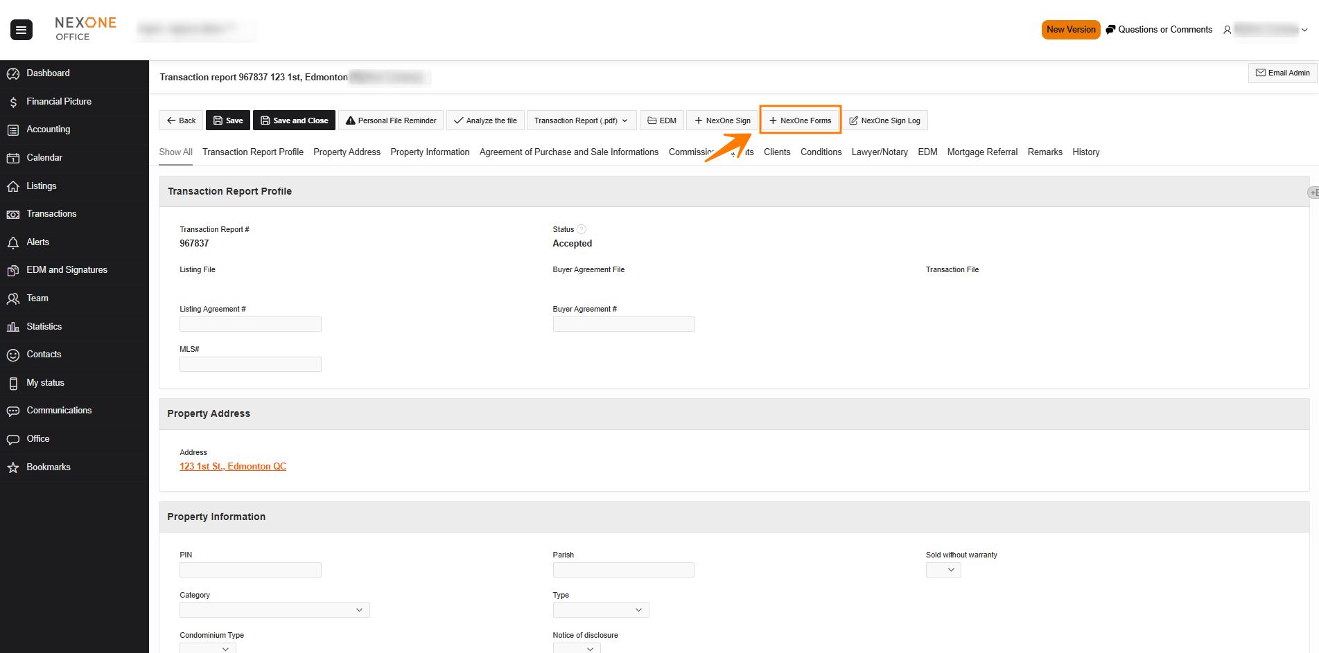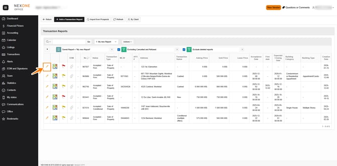 Select the Transaction Report where the forms will be added by clicking on the pencil.