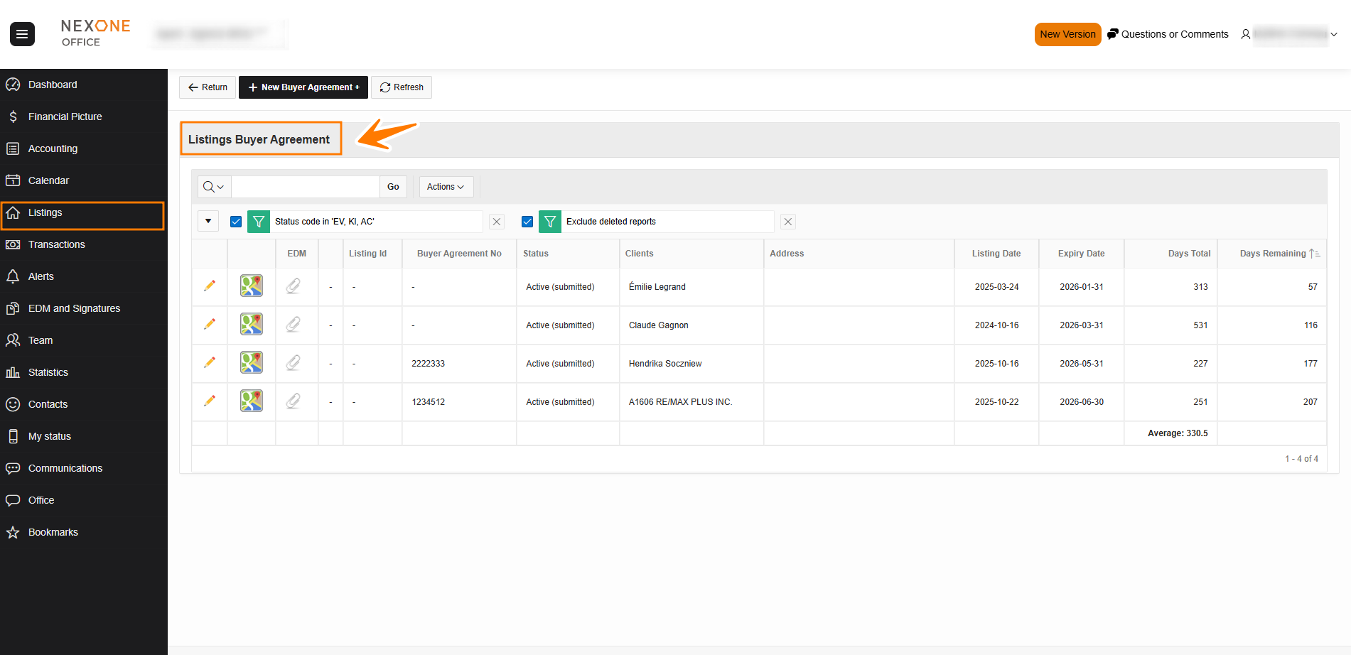 - Buyer Agreement: This option allows agents to search for their Buyer Agreements.