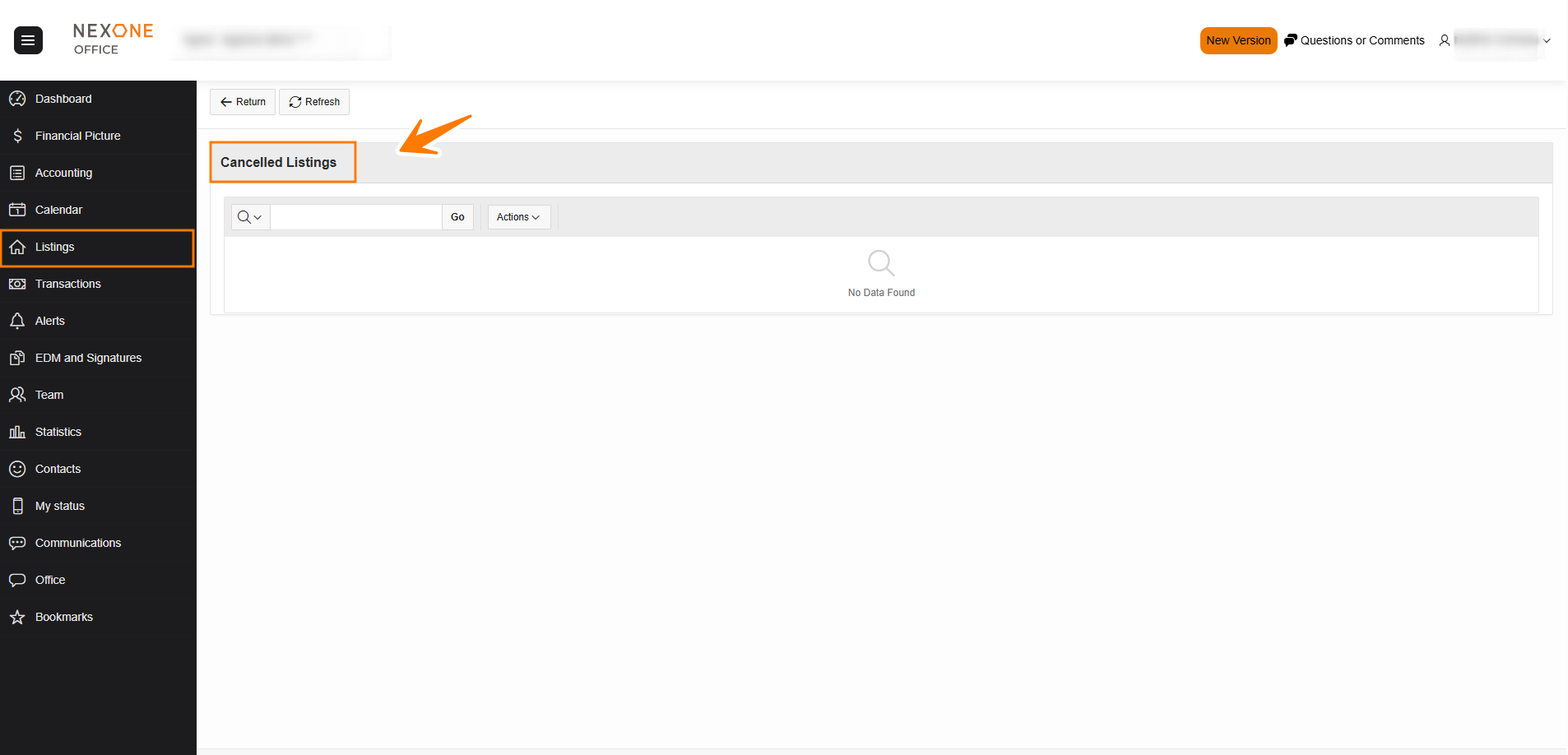 - Cancelled: Allows the agent to see all his cancelled listings.