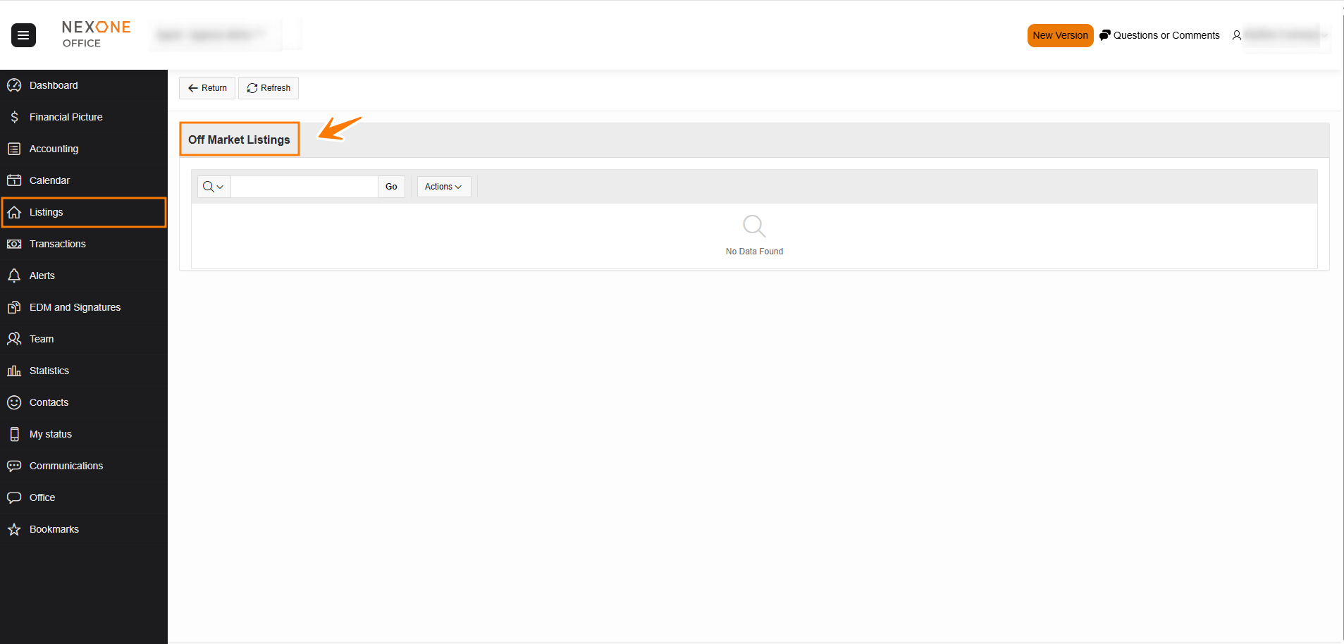 - Off Market: This option shows all the Off Market listings of the agent.