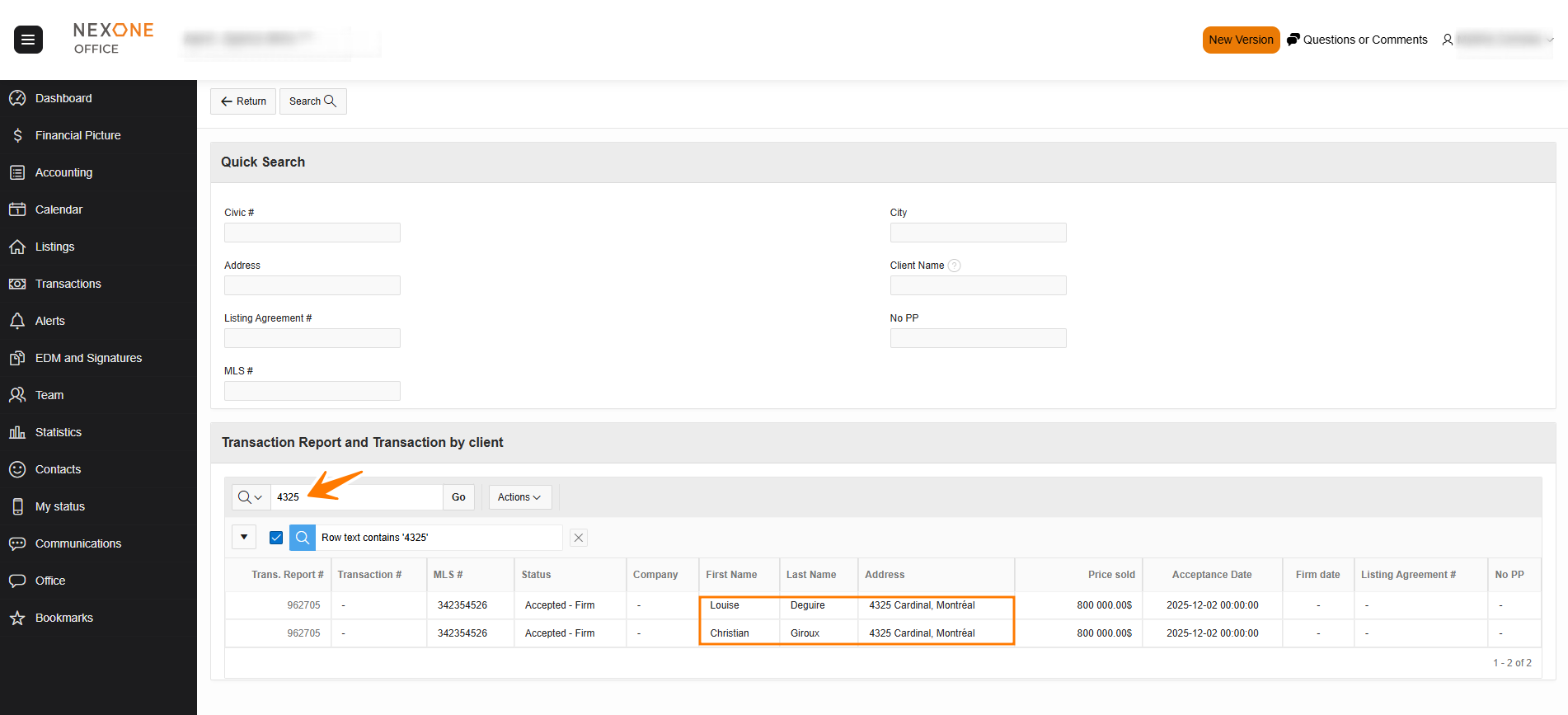 Listing agreement: This option allows you to search by Purchase Brokerage contract number.